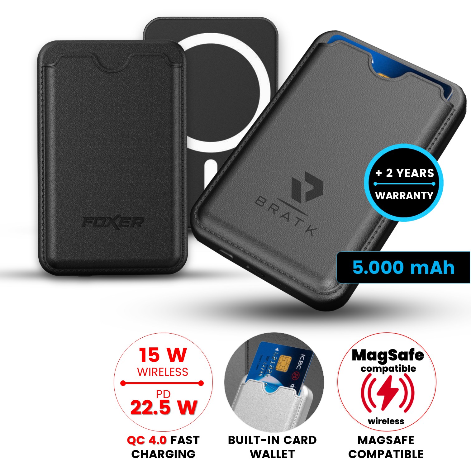 5000 mAh - magnetická power banka TANNOX, s 15W bezdrátovým nabíjením a pouzdrem na karty