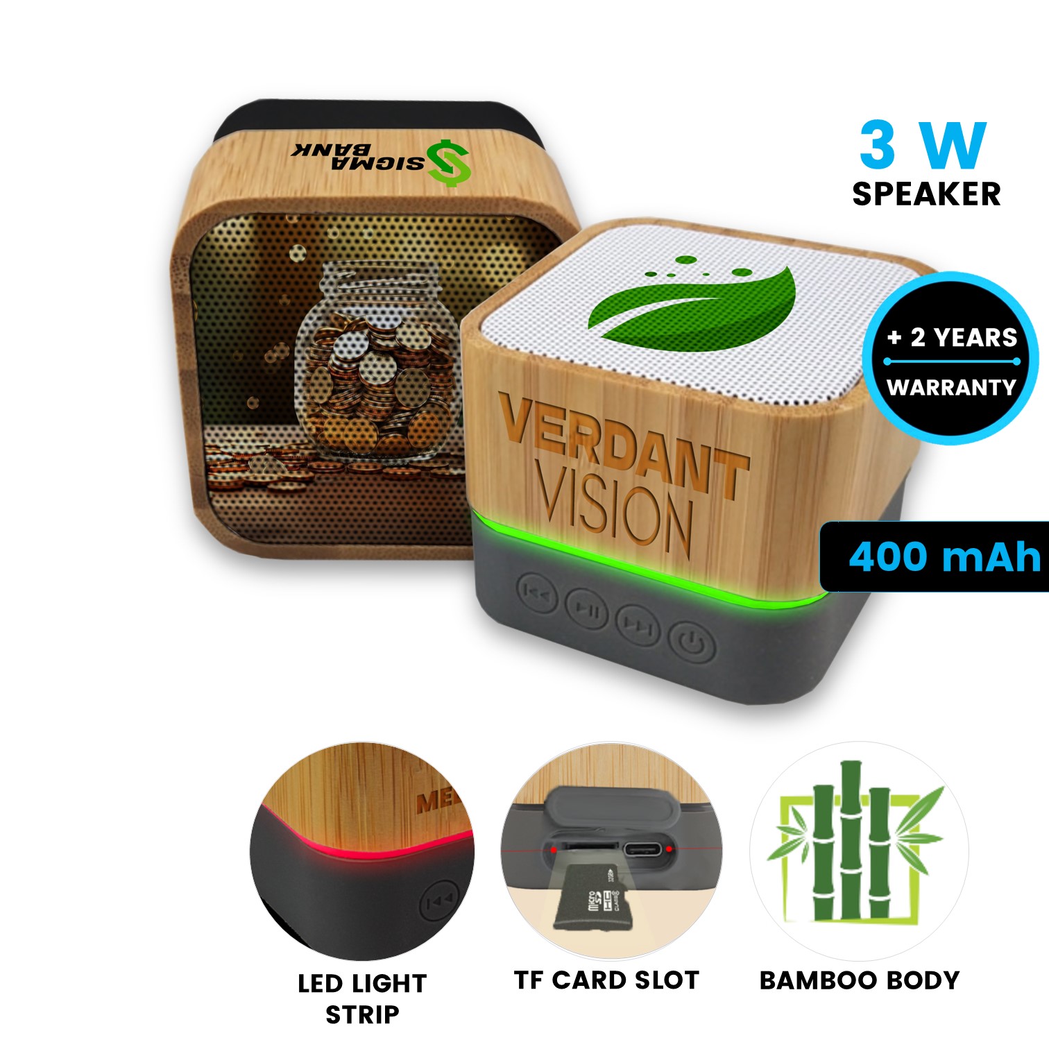 3W bambusový bezdrátový reproduktor s rGB světelným proužkem